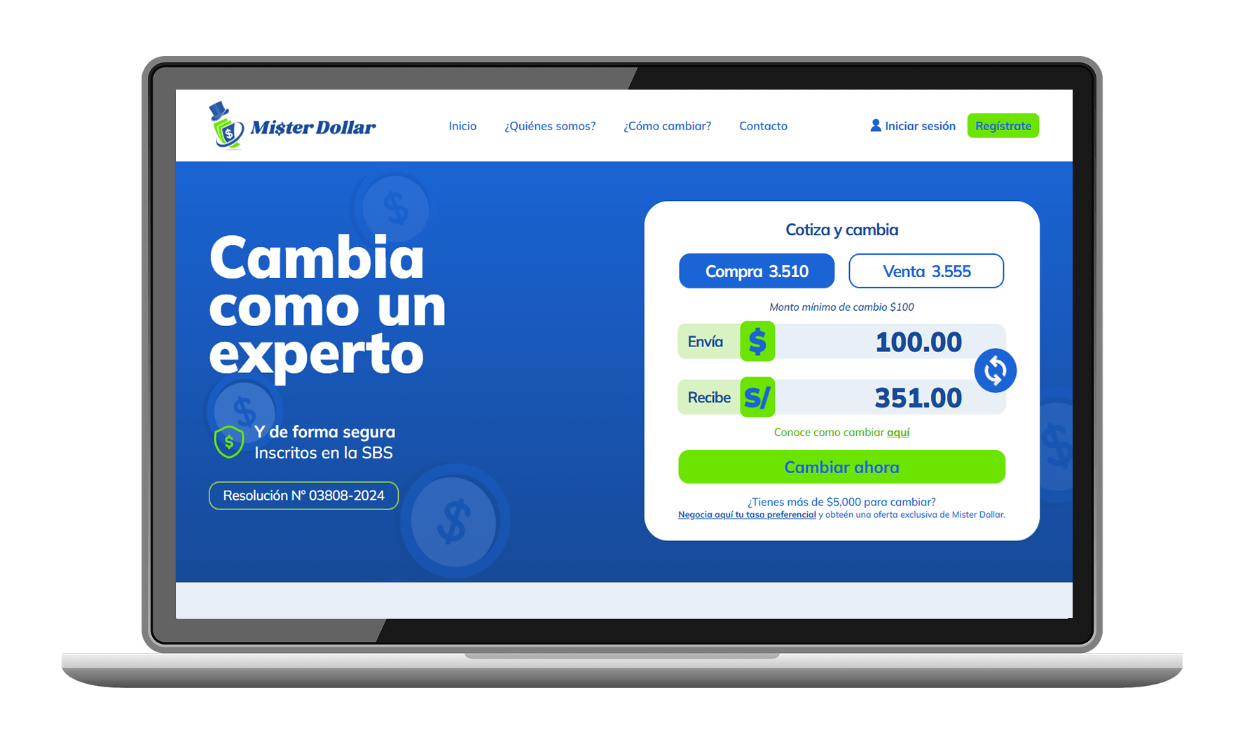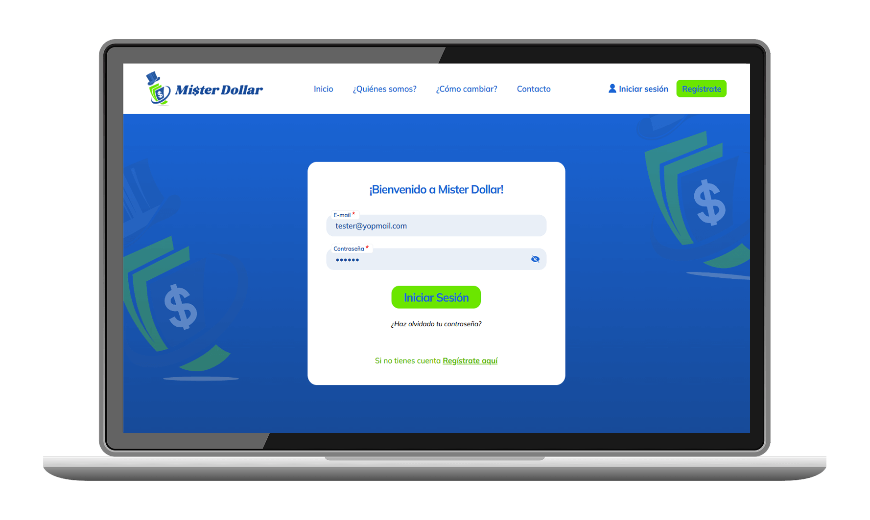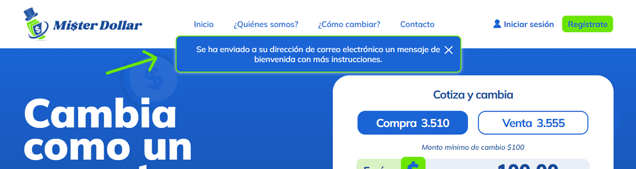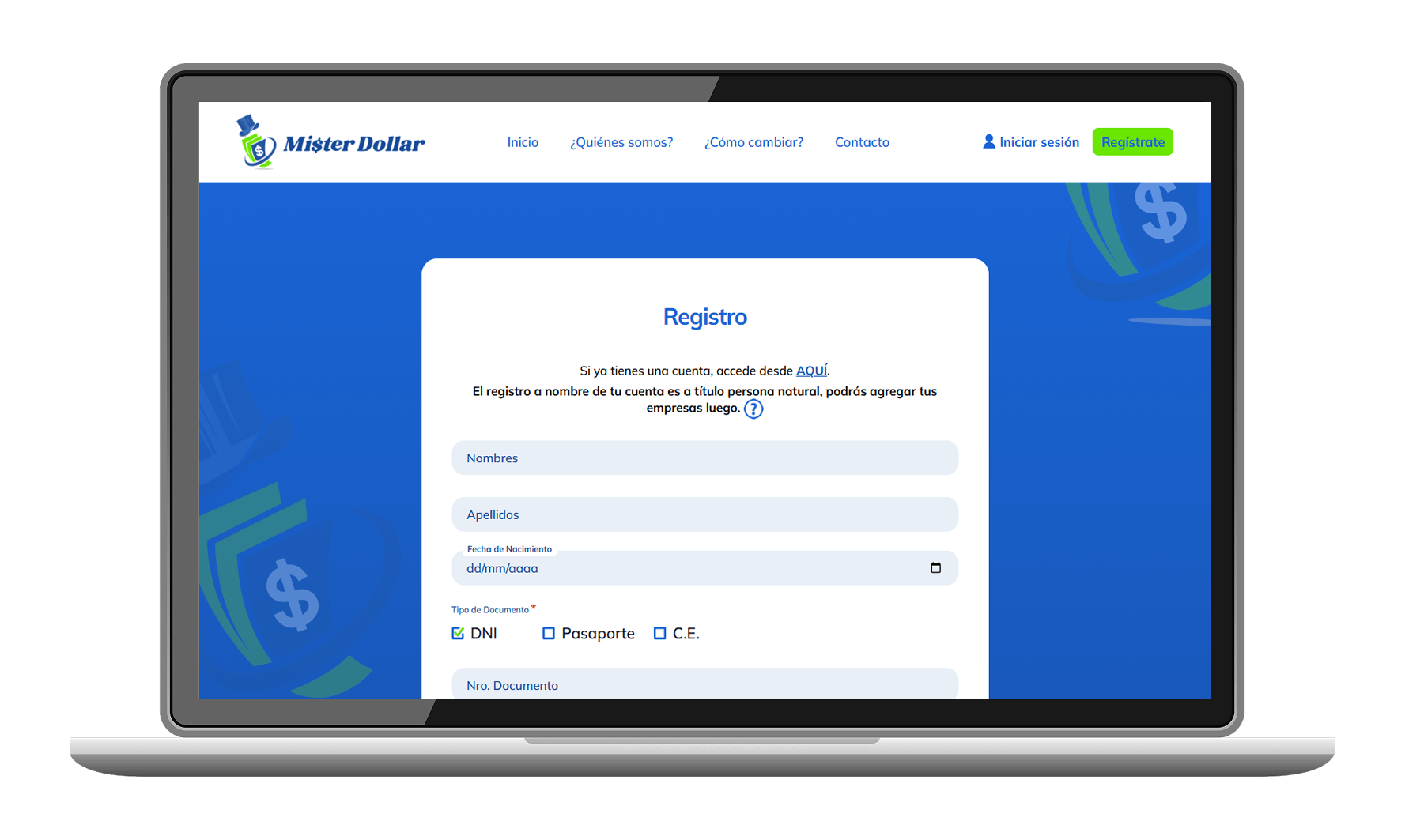 Ingresa a nuestra web www.misterdollar.pe y ve a la sección Regístrate
