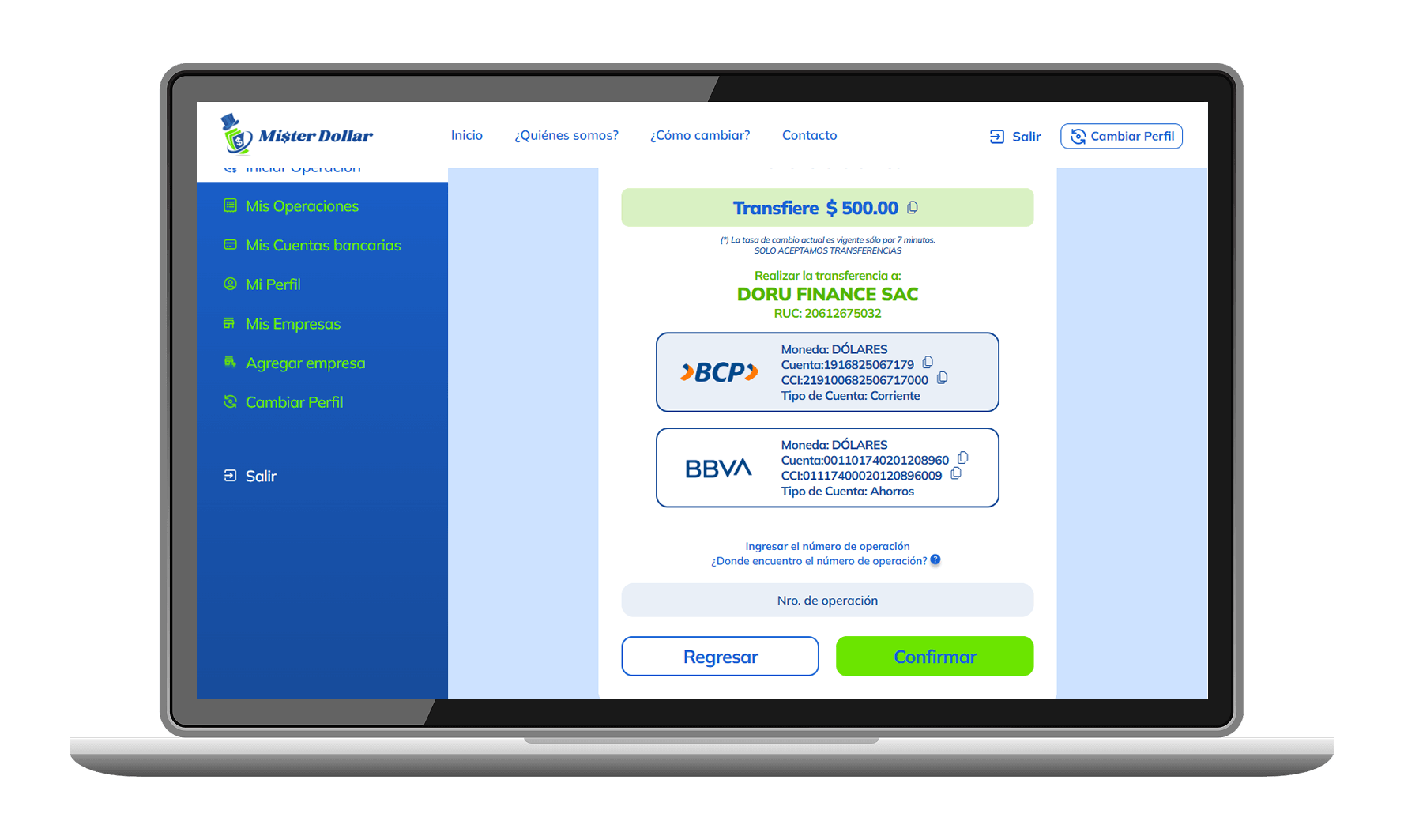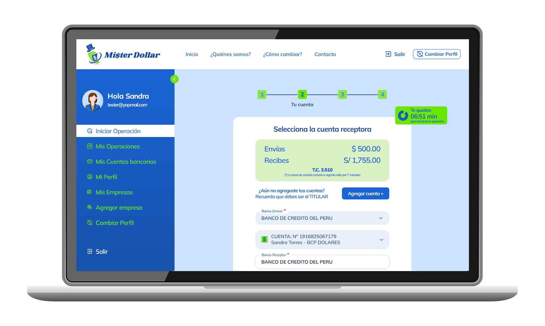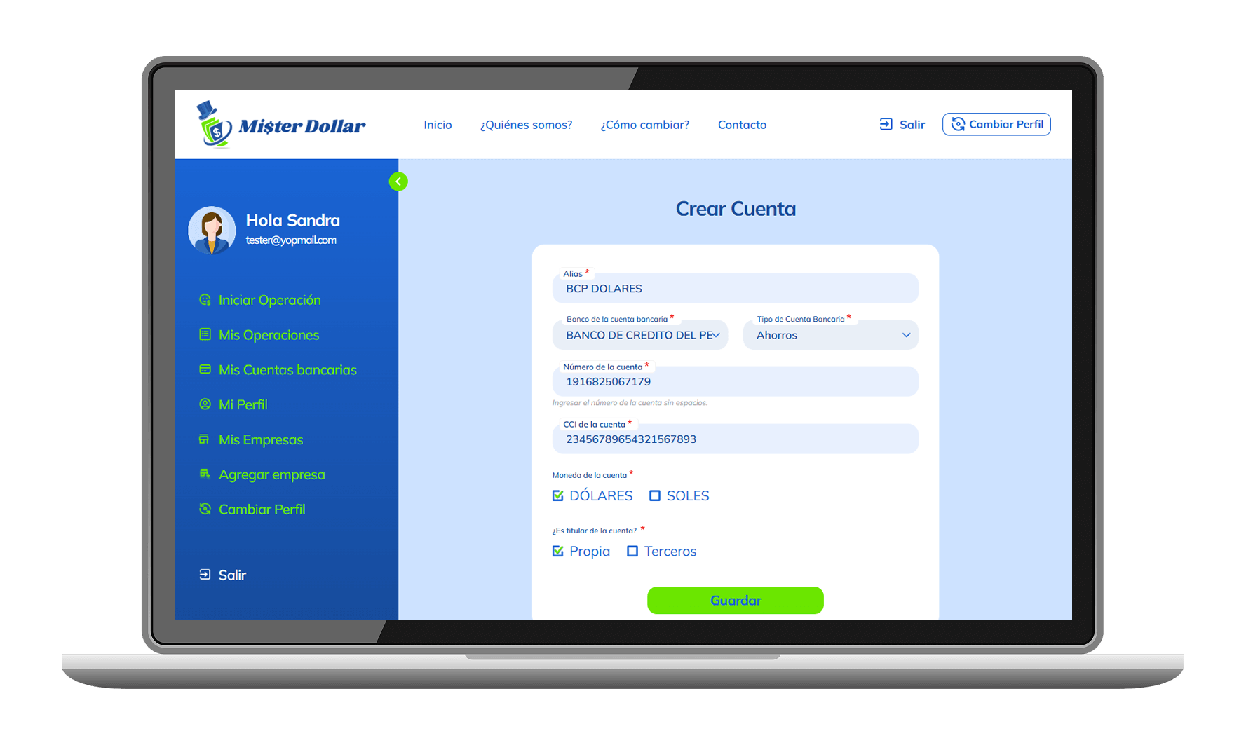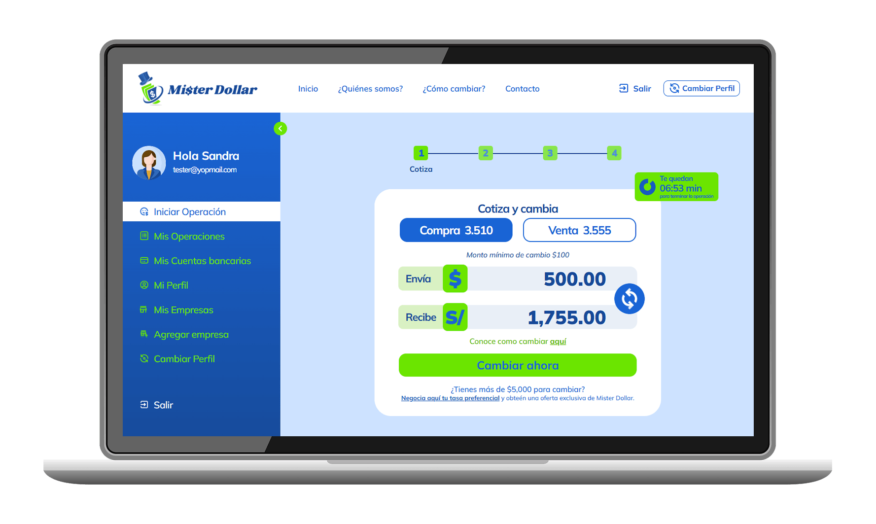 Ingresa a nuestra web www.misterdollar.pe y ve a la sección Regístrate