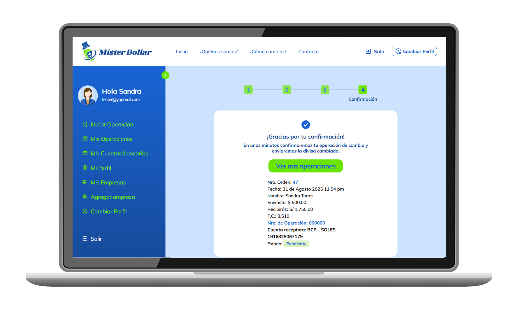 Nosotros validaremos y procesaremos la transferencia de la divisa cambiada, avisandote vía email.