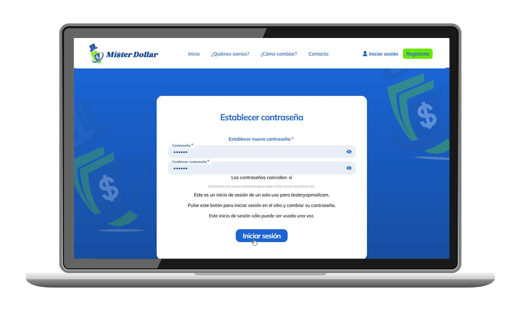 Después de registrarte y validar tu cuenta, ingresa una nueva contraseña, en las siguientes ocasiones podrás acceder desde Iniciar Sesión con tu correo electrónico y contraseña.